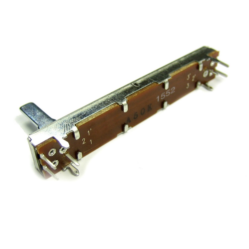 Резистор змінний: Повзунковий, Стерео: Опір: 50 кОм: Допуск: 20%: Монтаж: вивідний: Потужність: 60 мВт