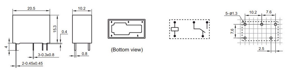 Мініатюрне реле: електромагнітне: 1C: Uобмоткі: 24VDC: Ком. NO: 10A / 125VAC: NC: 3A / 250 ваc. 20,5х10,2х15,3
