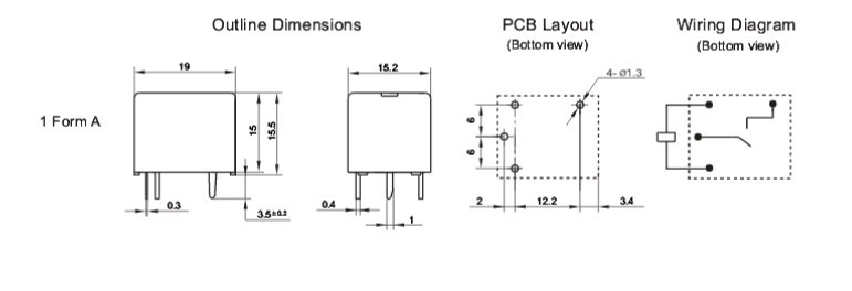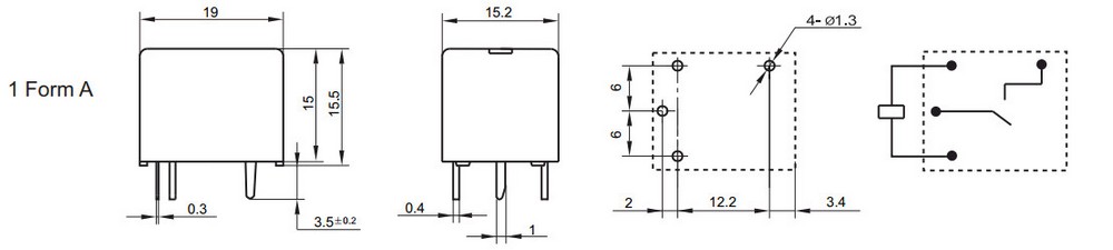 Мініатюрне високопотужне реле: електромагнітне: контакт - замикає: Uобмоткі: 5VDC: Ком. 10A / 250VAC: 10A / 28VDC. 19,7х15,2х15,5
