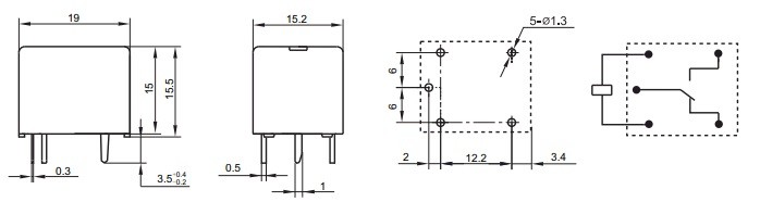 Реле: електромагнітне: SPDT: Uобмоткі: 12VDC: 10A / 277VAC: 10А, Розмір: 19x15.5x15.2мм