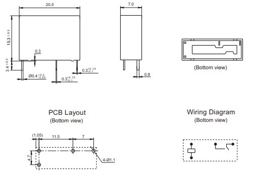 Реле: електромагнітне, 1А, Uобмоткі: 24VDC, кому. 7A / 250VAC, 10А, Розмір: 20,5x7x15,3мм