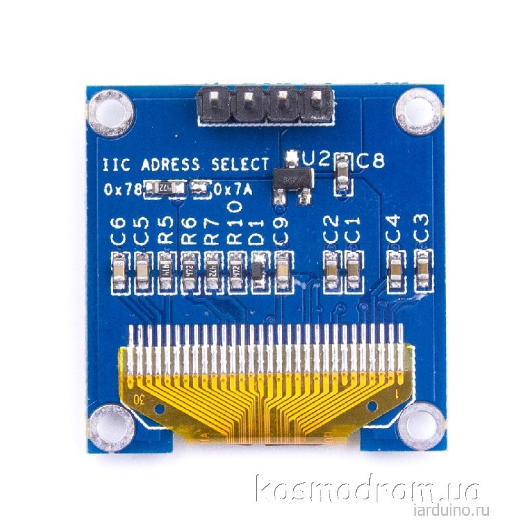 Oled дисплей: 0,96 дюйма. 128x64. Uпит. 3,3 ... 5 В. I2C інтерфейс. -30 ... 70 ° С Контролер: SSD1306. синій / жовтий