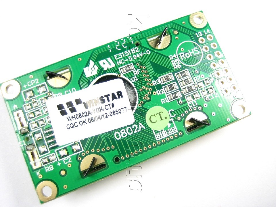 РКК знакосинтезуючий 8 x 2, STN Сірий Позитивний/відбиваючий світлодіодне підсвічування Жовто-зелений, розмір 58x32 мм, видима область 38x16 мм, живлення 5В, English/Cyrillic Font