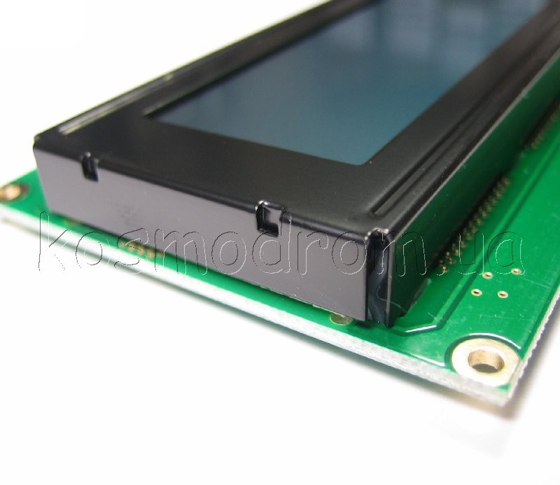 символьний - 20 символів x 4 рядків. розміри модуля, мм: 98.0x60.0. розмір видимої області, мм: 77.0x25.2 (діагональ: 3.2 = 8.1 см). Розмір символу: 2,95х4,75 мм, English/Cyrillic Font