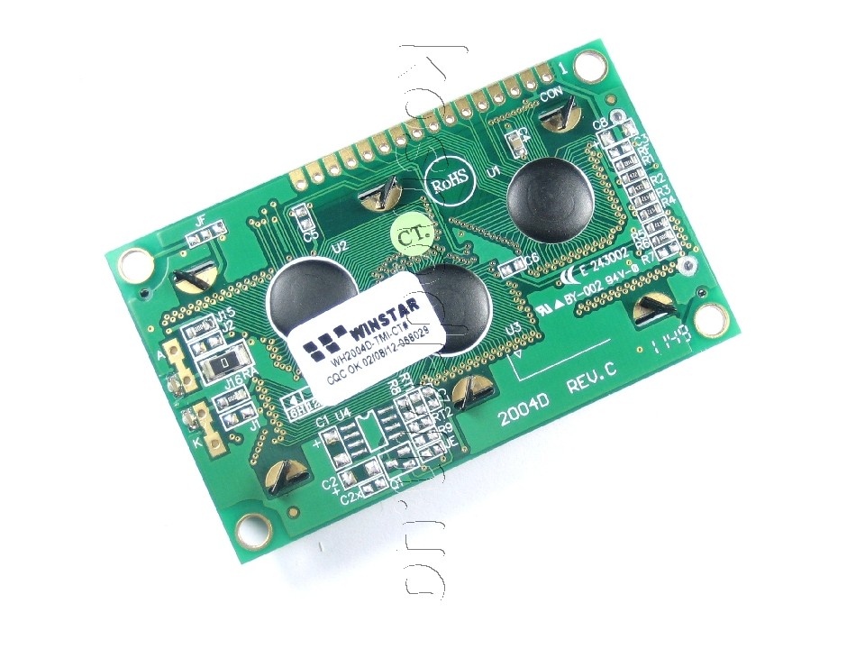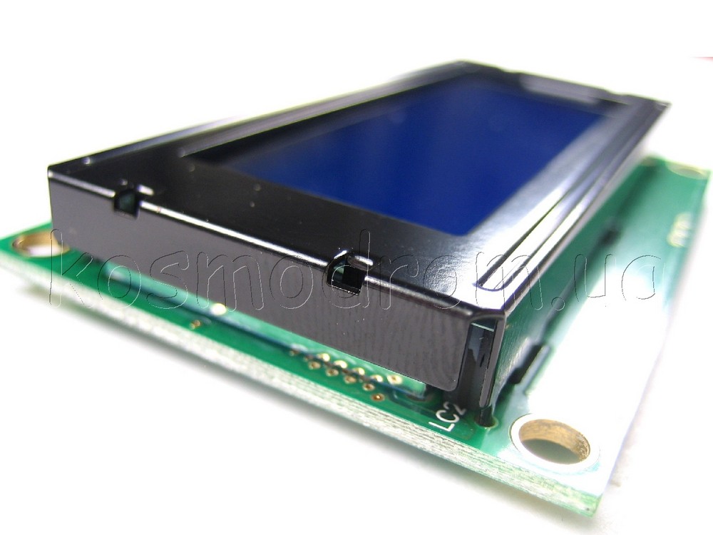 символьний - 20 символів x 4 рядків. розміри модуля, мм: 77.0 x 47.0. розмір видимої області, мм: 60.0 x 22.0 (діагональ: 2.5 = 6.4 см). Розмір символу: 2,3х4,03 мм, English/Cyrillic Font
