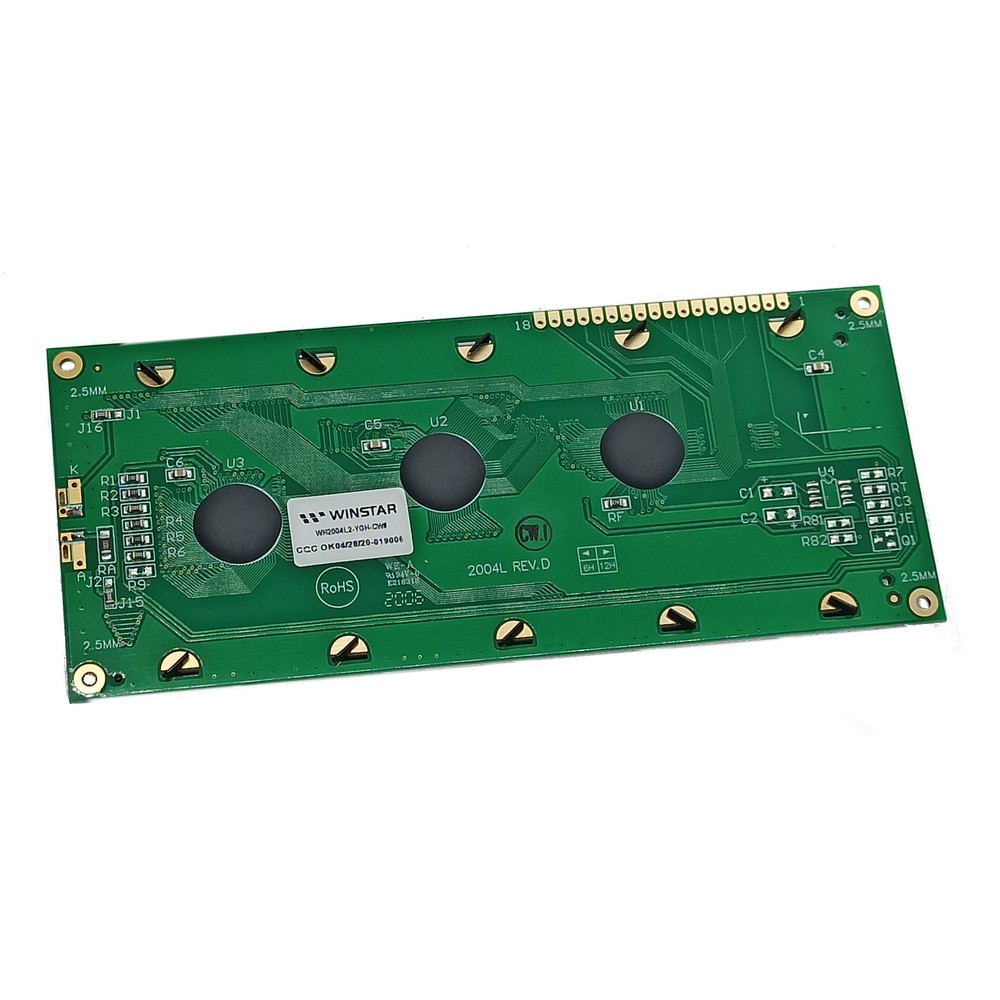 символьний - 20 символів x 4 рядків. розміри модуля, мм: 146.0 x 62.5. розмір видимої області, мм: 123.5 x 43.0, Розмір символу: 4,84х9,22, Інтерфейс I2C, English/Cyrillic Font