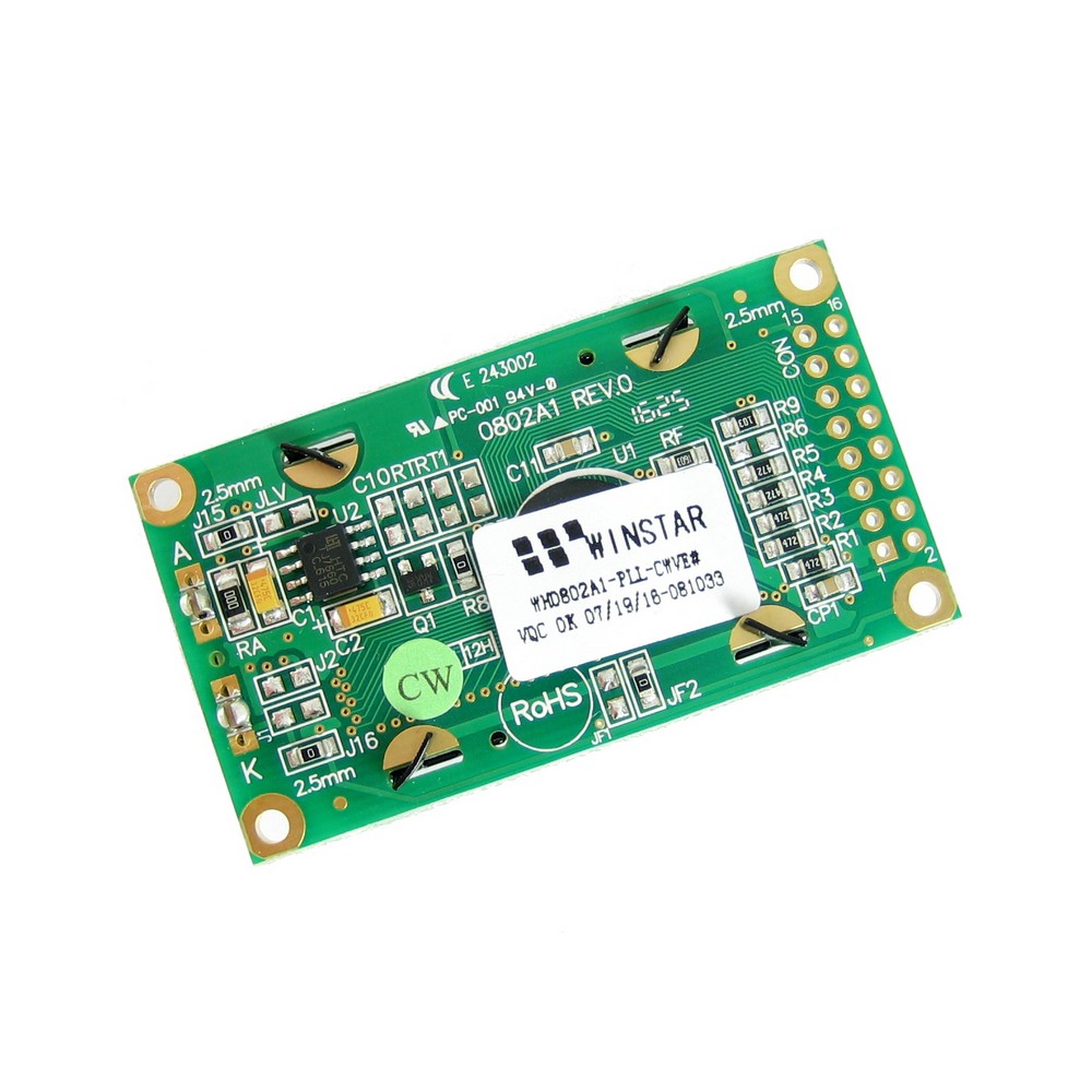 ЖК-дисплей, VATN, 8 символів 2 рядки, колір підсвічування: синій, Інтерфейс: 6800 interface (ST7066 IC), розміри: 58х32 мм, Розмір символів 2,96х5,56 мм, English/Cyrillic Font