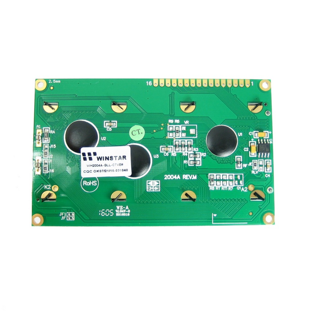 ЖК-дисплей, VATN, 20 символів 4 рядки, колір підсвічування: зелений, Інтерфейс: 6800 interface (ST7066 IC), розміри: 98х60 мм. Розмір символу: 2,95х4,75 мм, English/Cyrillic Font