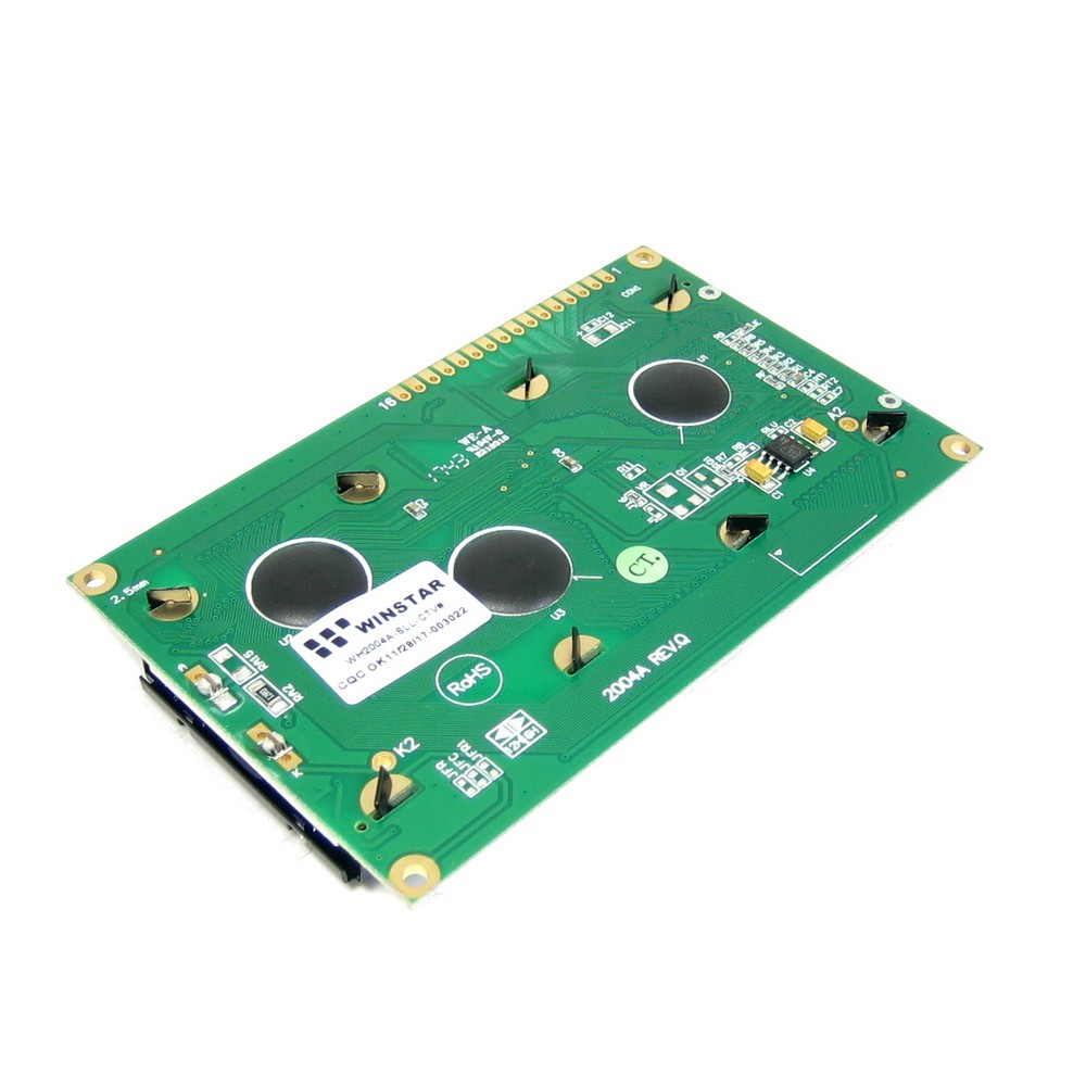 ЖК-дисплей, VATN, 20 символів 4 рядки, колір підсвічування: білий, Інтерфейс: 6800 interface (ST7066 IC), розміри: 98х60 мм. Розмір символу: 2,95х4,75 мм, English/Cyrillic Font