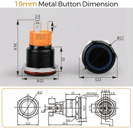 плоская, NO-NC, D=19 мм, с фиксацией, без подсветки, черная black