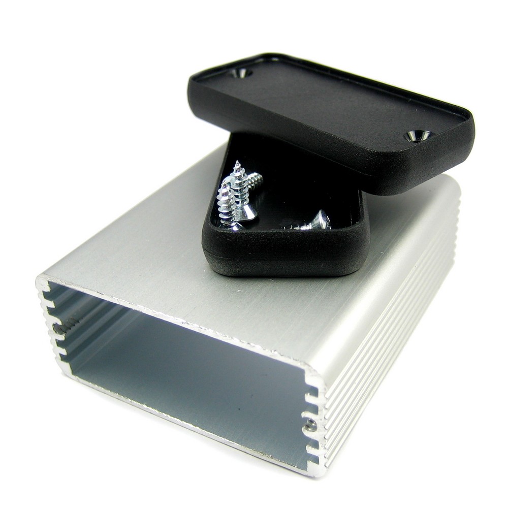 Корпус алюминиевый, анодированный, с пластиковыми крышками, размеры (ДхШхВ): 60х54х23мм. Цвет крышек: черный.