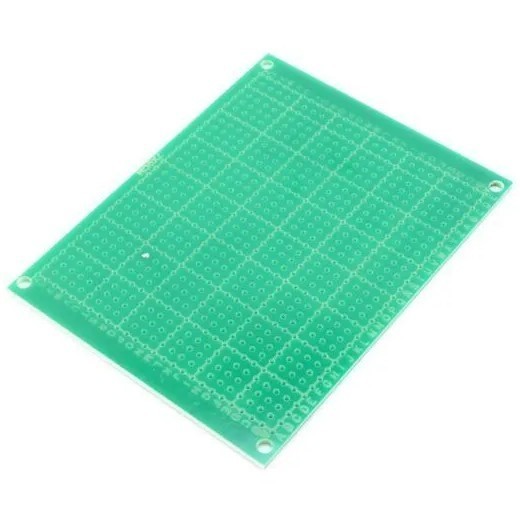 Макетная плата, односторонняя, луженые контакты, размеры 70х100 мм. Цвет маски зелёный. Шаг 2,54 мм.