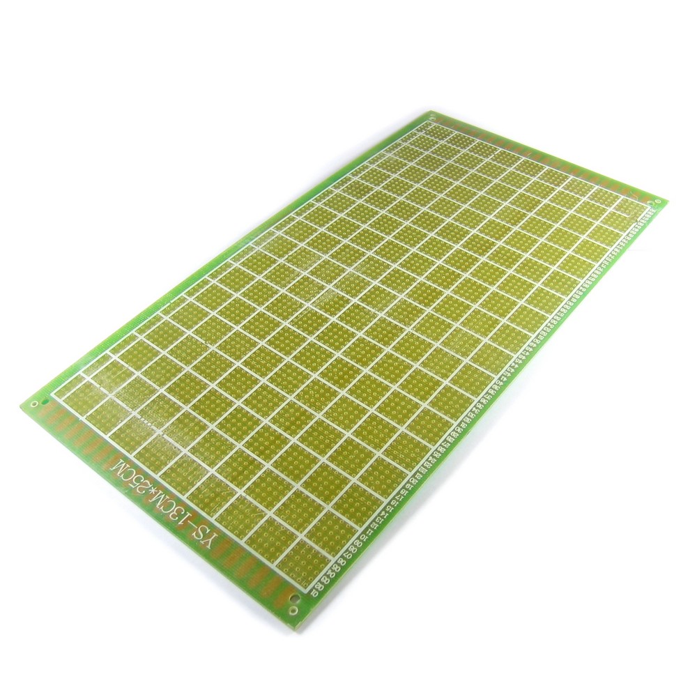 Макетная плата, односторонняя, без металлизации отверстий, луженые контакты, размеры 130х250 мм. Цвет маски зелёный. Шаг 2,54 мм.