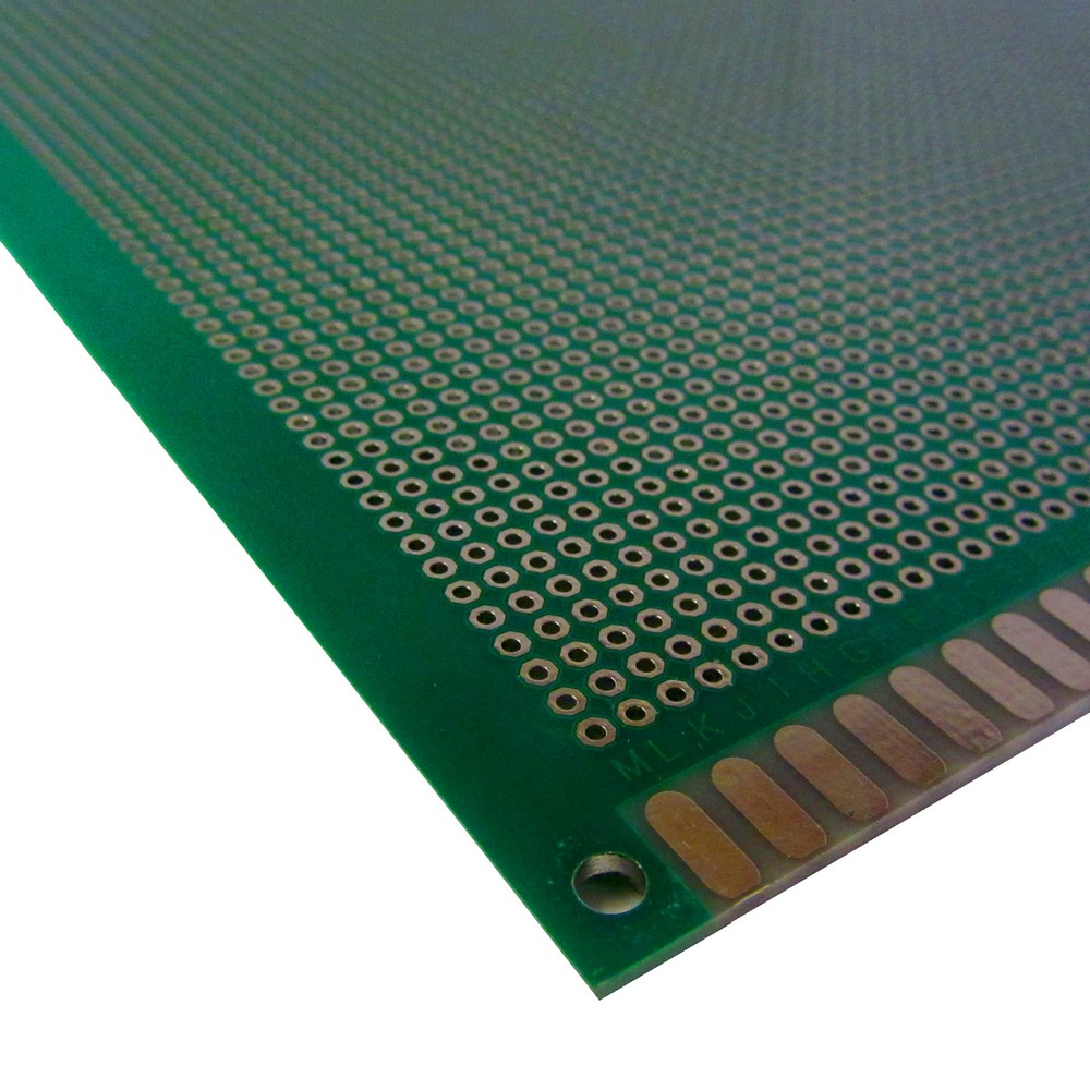 Макетная плата, двухсторонняя, с металлизацией отверстий, размеры 180х300 мм. Цвет маски зелёный. Шаг 2,54 мм.