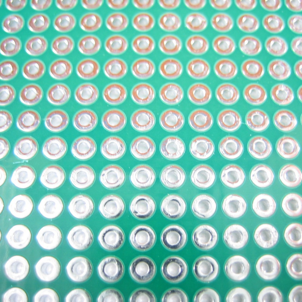 Макетная плата, двухсторонняя, с металлизацией отверстий, размеры 90х150 мм. Цвет маски зелёный. Шаг 2,54 мм.