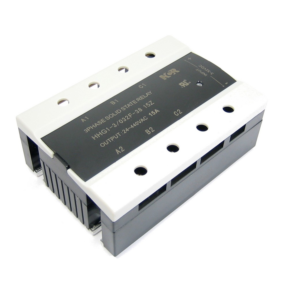 Твердотельное реле, трехфазное, Управление: 3-32VDC. Нагрузка: 40-440 VAC/15A, TSR-15DA