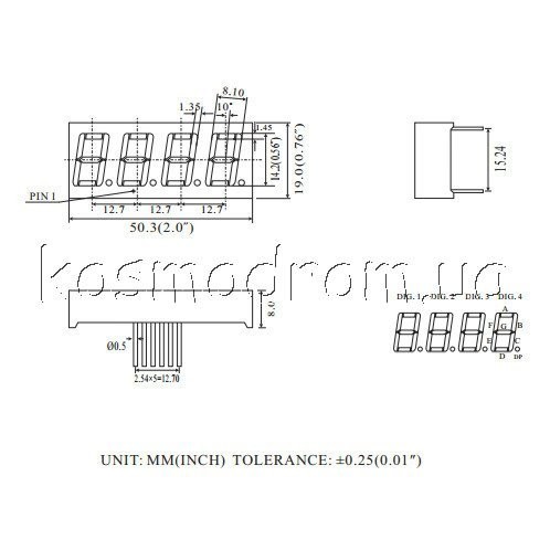 Светодиодный индикатор, общий анод, высота символа 14,22 мм, четырехсимвольный, цвет свечения красный яркий, ЧЕРНЫЙ фон. Динамическая индикация