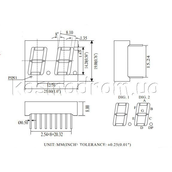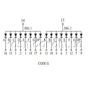 Светодиодный индикатор двухсимвольный, общий анод, высота символа 14,22 мм, цвет свечения ЗЕЛЕНЫЙ, серый фон. Статическая индикация