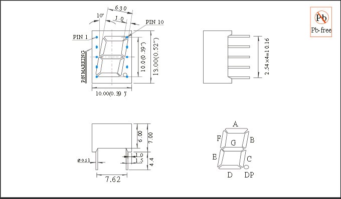 Светодиодный индикатор, общий катод, высота символа: 9,91 мм, односимвольный, цвет свечения: желтый яркий. Статическая индикация