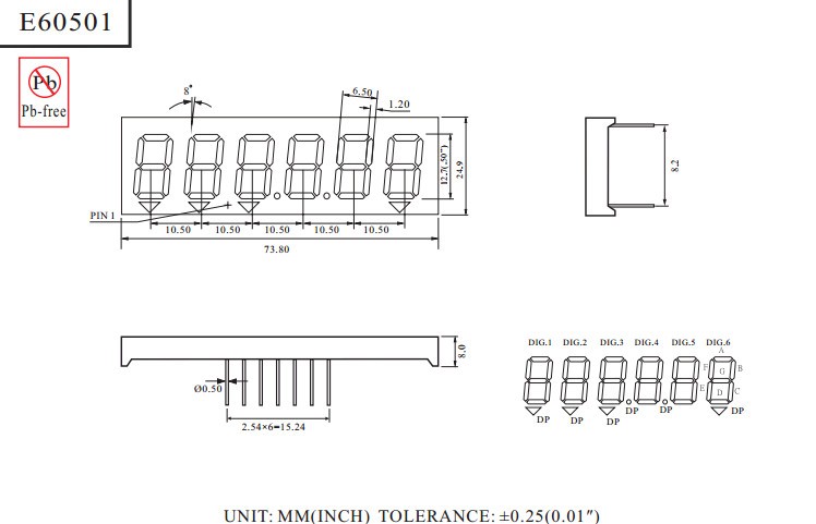 Светодиодный индикатор шестисимвольный