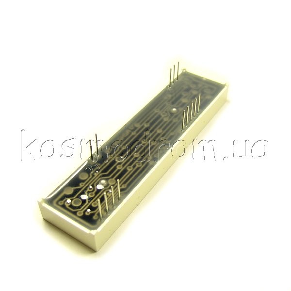 Светодиодный индикатор,шестисимвольный,высота символа-14,22 мм,схема-общий анод,цвет-зеленый яркий,фон-черный. Динамическая индикация
