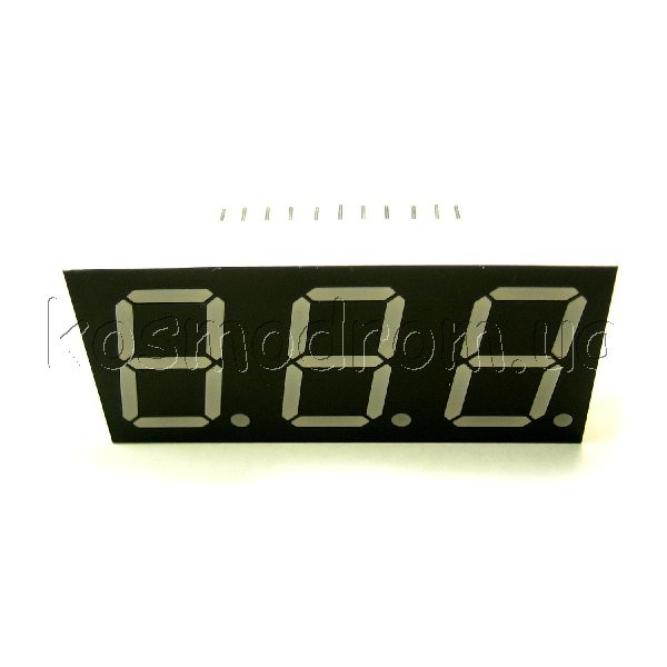 Светодиодный индикатор,трехсимвольный,высота символа-20,3 мм,схема-общий анод,цвет-красный яркий,фон-черный. Динамическая индикация