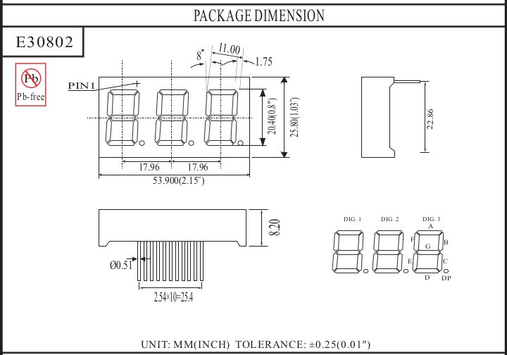 Светодиодный индикатор трехсимвольный