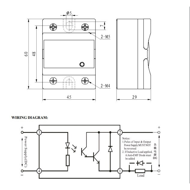 Твердотельное реле, однофазное, DC-DC. Управление: 5-32VDC. Нагрузка: 12-250 VDC/10A