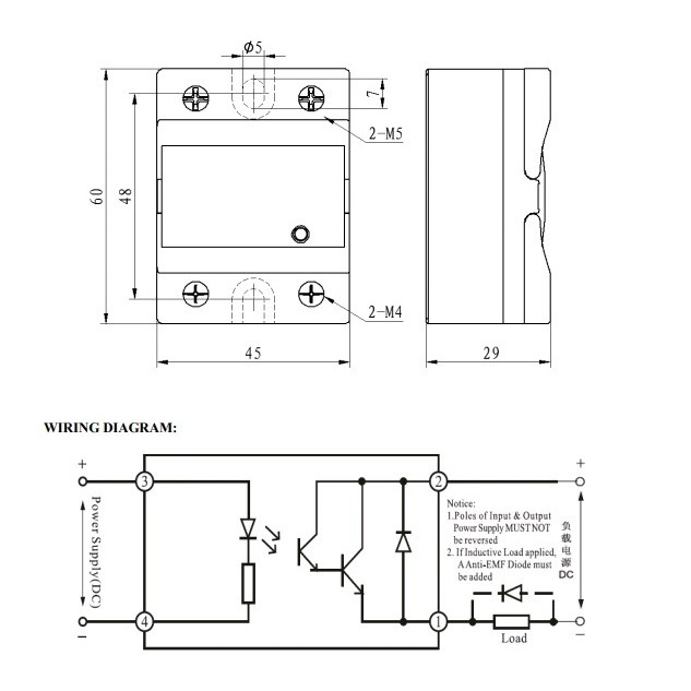 Твердотельное реле, однофазное, DC-DC. Управление: 5-32VDC. Нагрузка: 12-250 VDC/40A